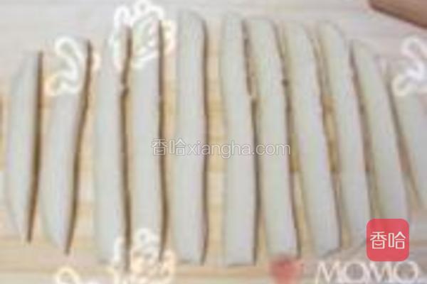 醒好后的面团擀成1.5cm厚1.5cm宽的面剂子,再