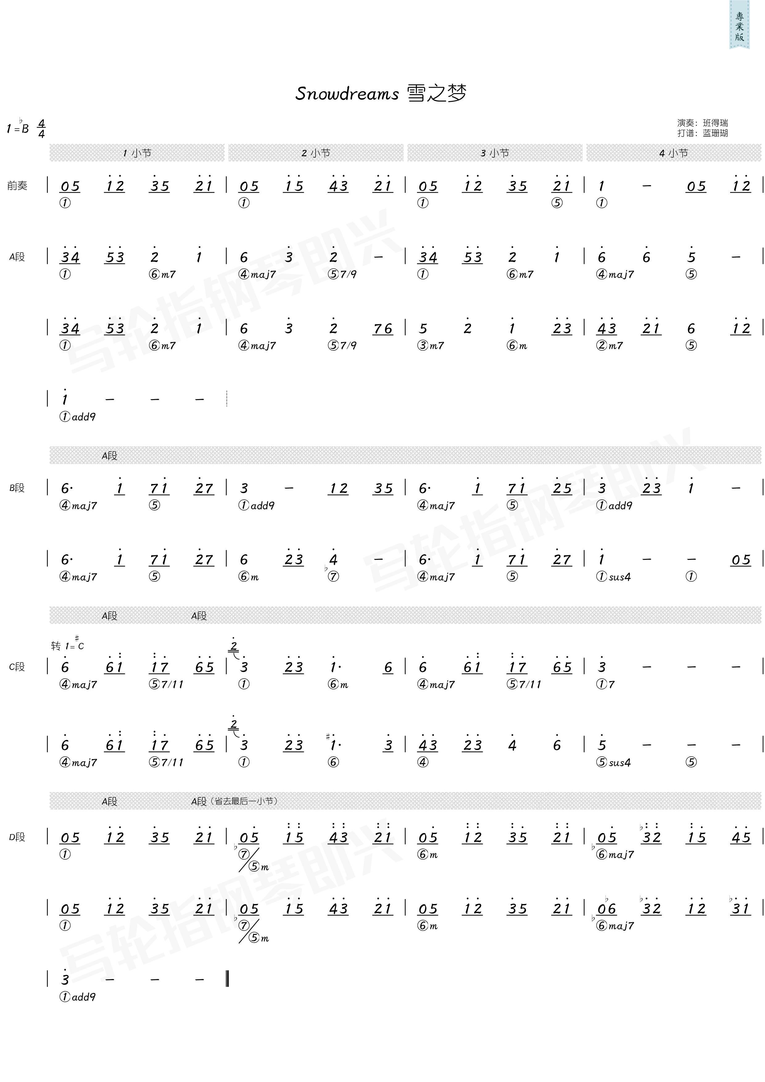 Snowdreams(雪之梦) 钢琴谱 钢琴双手简谱