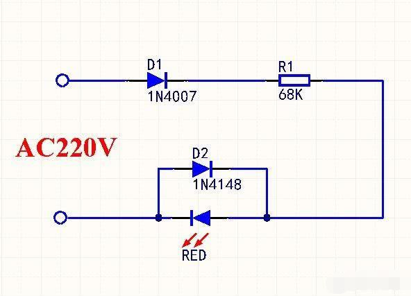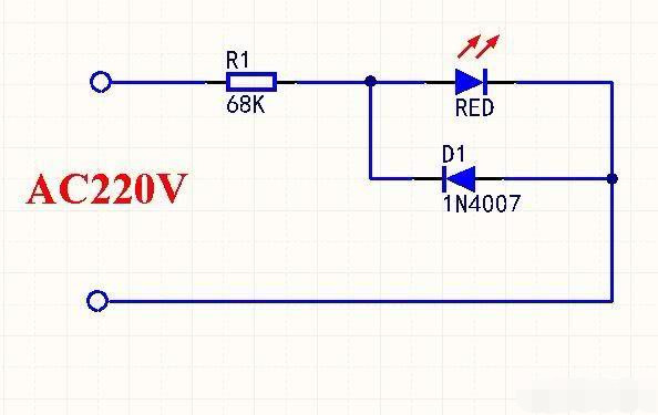 220V电源用一个电阻串联LED做指示灯,