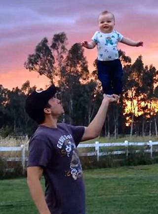 四个月男婴在父亲手中站立 大秀神奇平衡力