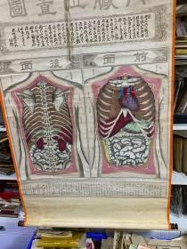 明治十年 光绪3年,内脏位置图,龙玉堂松云铜刻画,卷轴挂图,