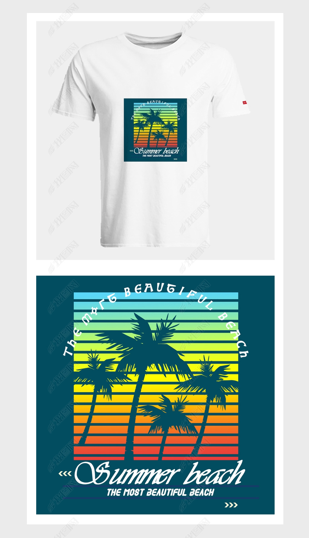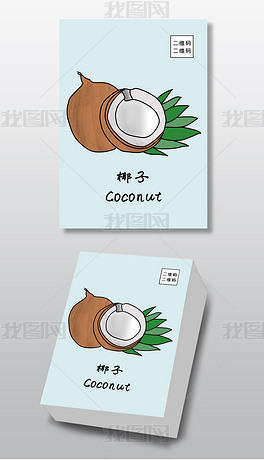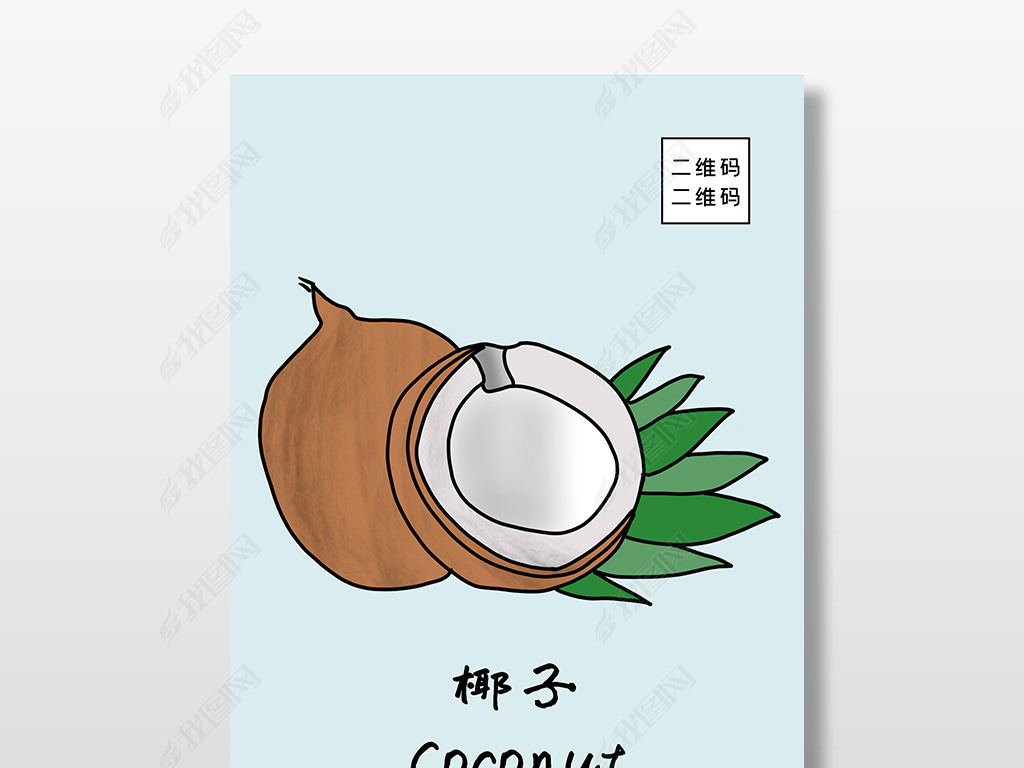 蓝色黄色椰子树时尚英文字母变形几何数字