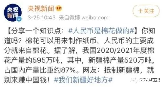 央视:人民币的主要成分来自棉花