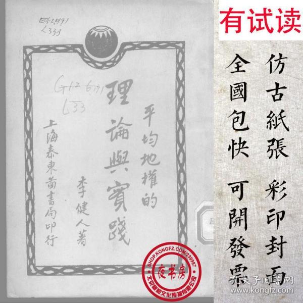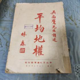 民国二十八年 吴尚鹰 先生讲述 《平均地权》 孙中山 三民主义 中山文化教育馆刊印