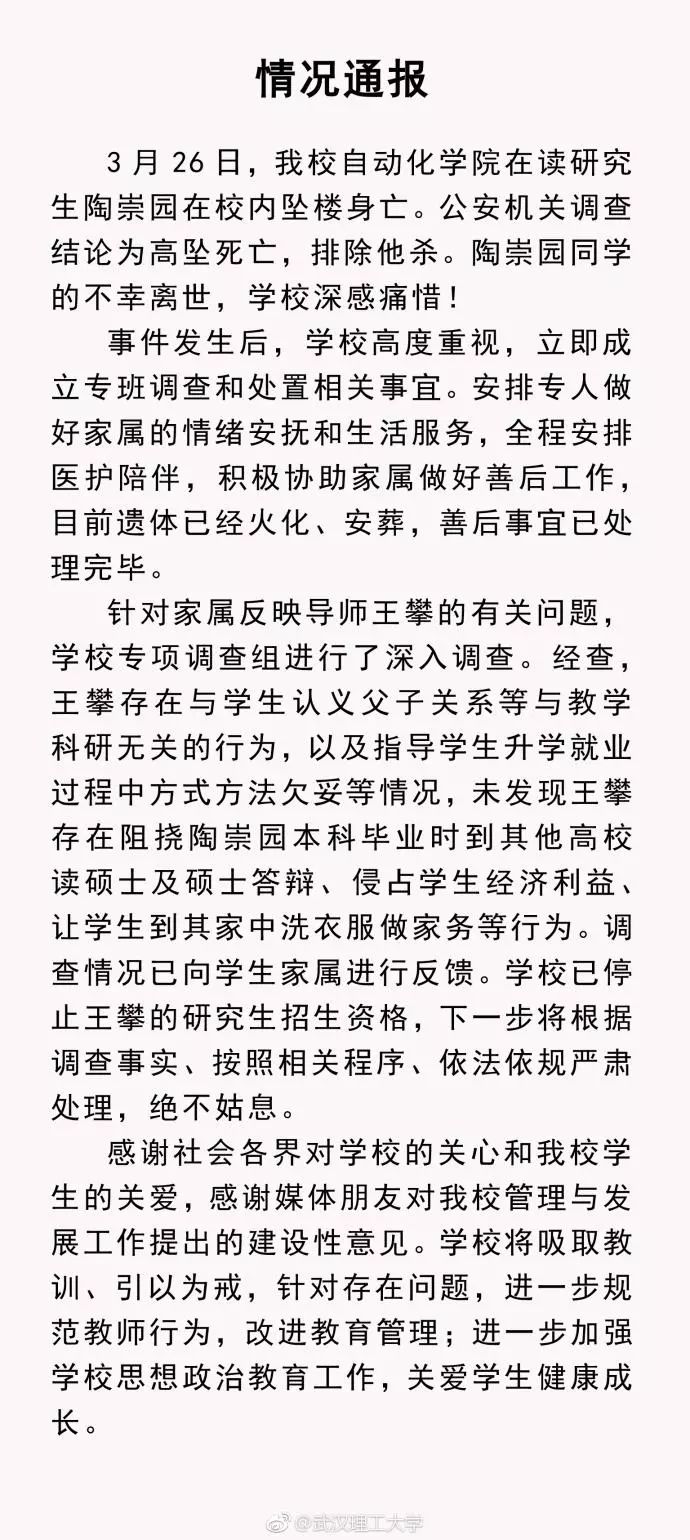 武汉理工大学王攀正式回应硕士跳楼事件: