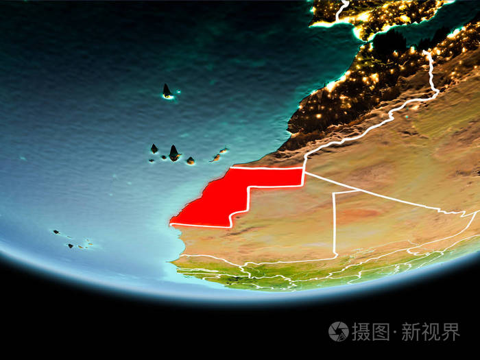 西撒哈拉国家以红色在地球上的夜晚, 有