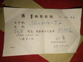 -耿庸亲笔签名,《萌芽》稿费收据--见描述