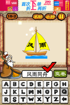 疯狂猜成语画有一只小船黄色的帆上面写风字和雨字是指什么
