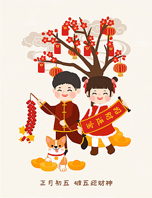 正月初五,迎财神
