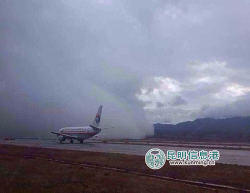长水机场跑道18日突现低云接地 网民调侃
