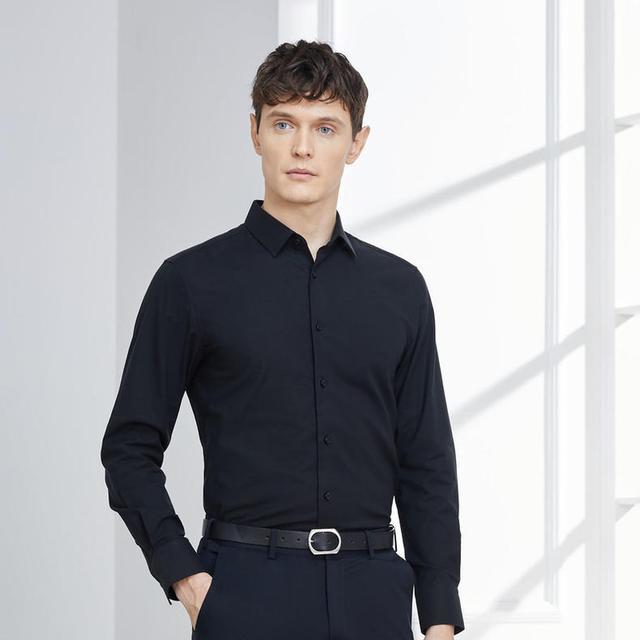 Pengulnprince 黑色衬衫纯黑色男士衬衣汗衫静版黑色商务衬衫黑色43【图片