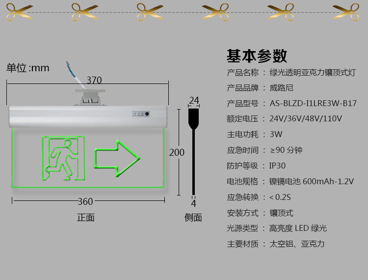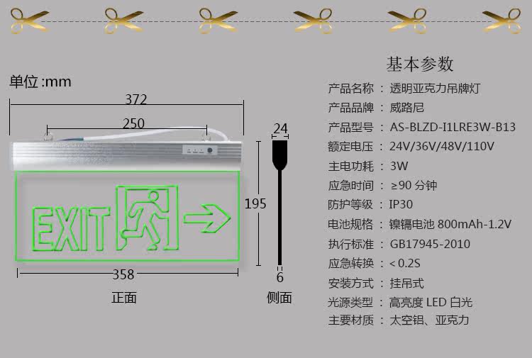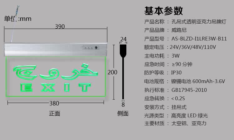 消防应急安全出口指示灯外国英文透明