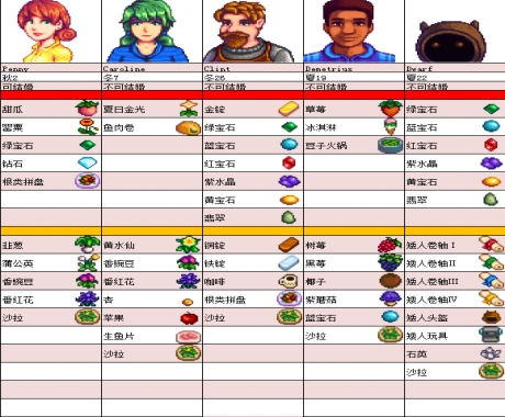 星露谷物语人物喜爱物品图鉴 (送鱼类图鉴)