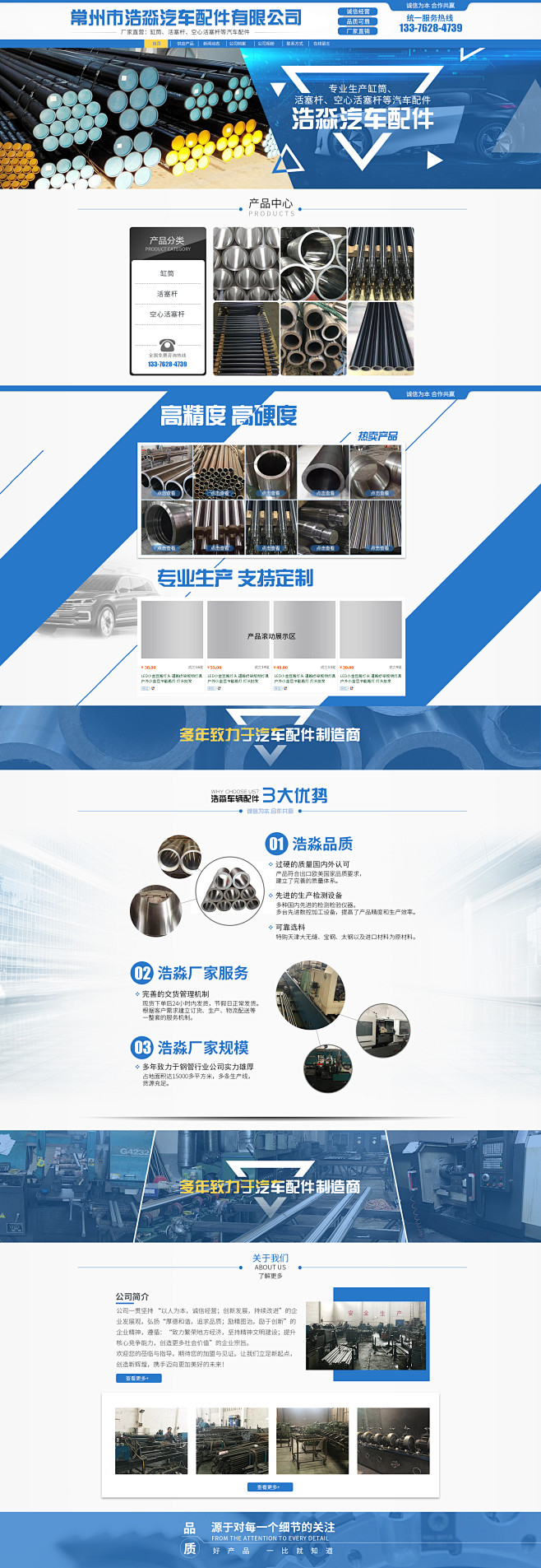 浩淼首页2 不锈钢钢管 产品多 种类少 分类加产品展示加公司优势加公司简介 左右排版 整体图片类型的banner 几何透视banner