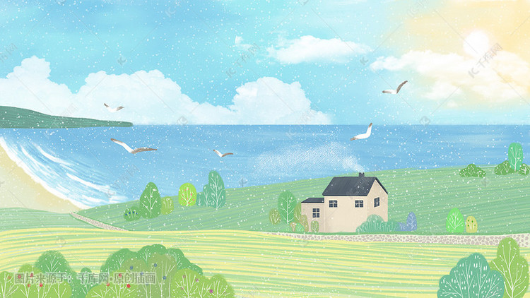 治愈唯美美景面朝大海春暖花开海鸥景色