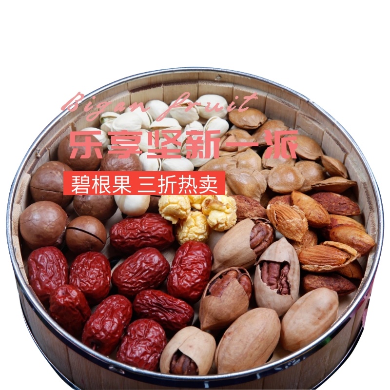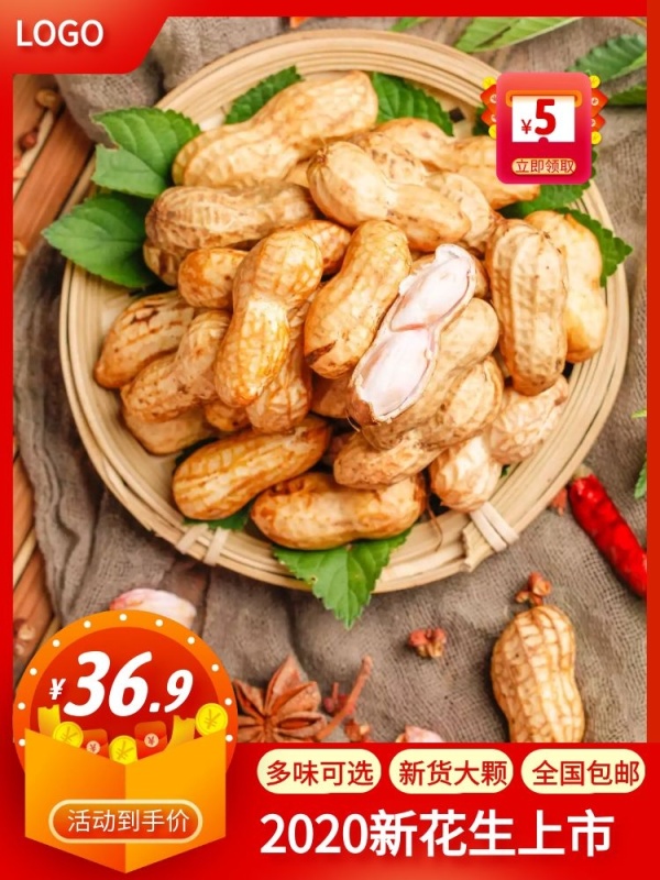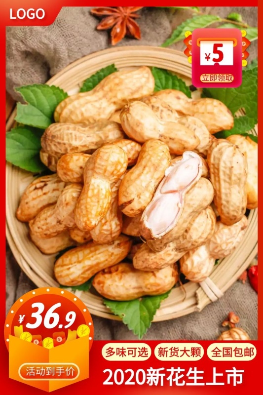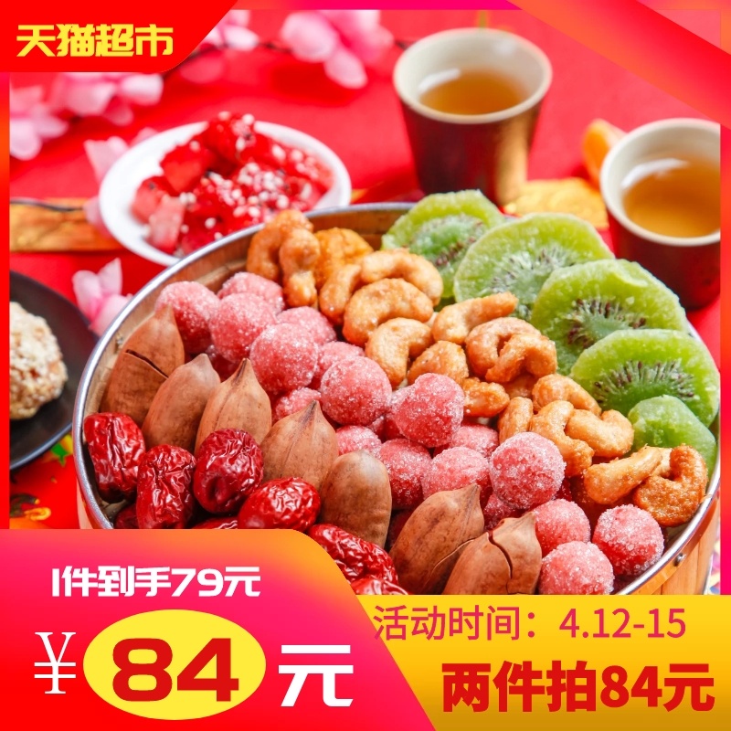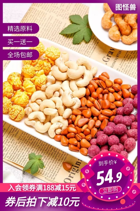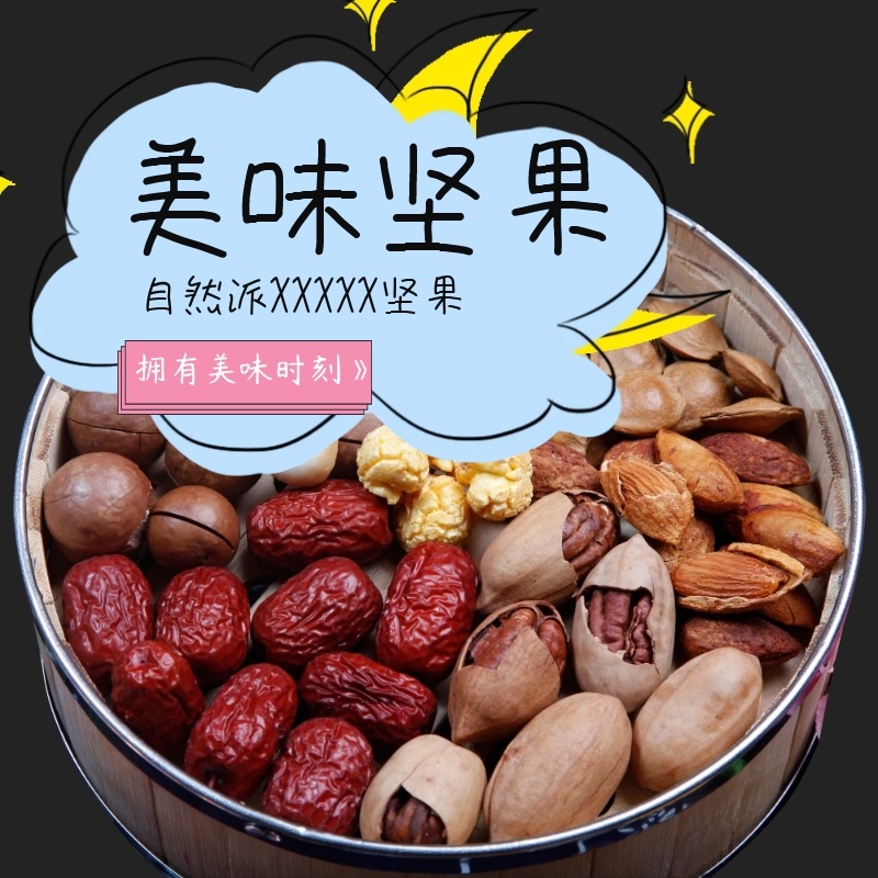 坚果杏仁淘宝零食创意红黄主图直通车海报