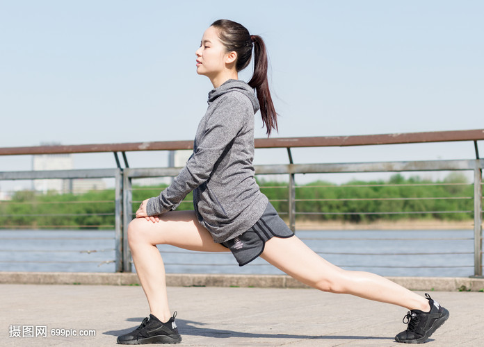时尚女性户外运动热身拉伸准备