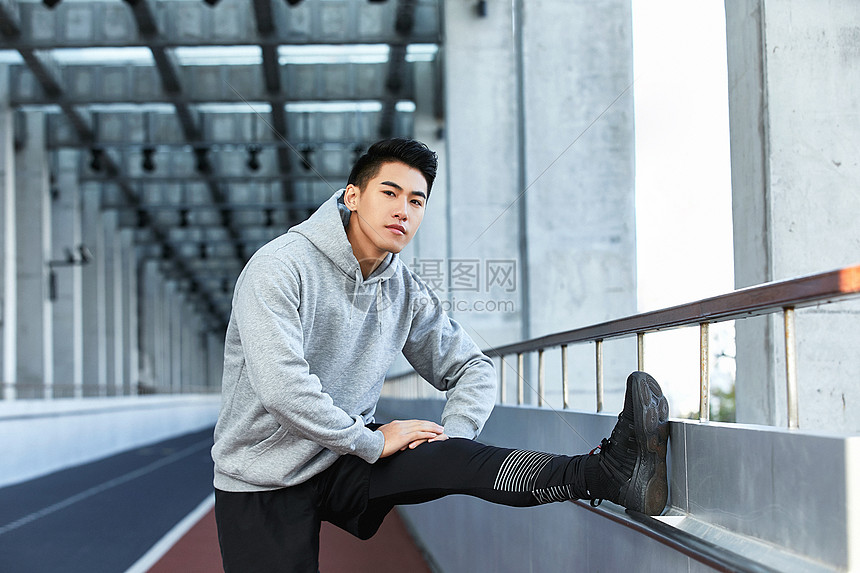 年轻男生户外运动拉伸