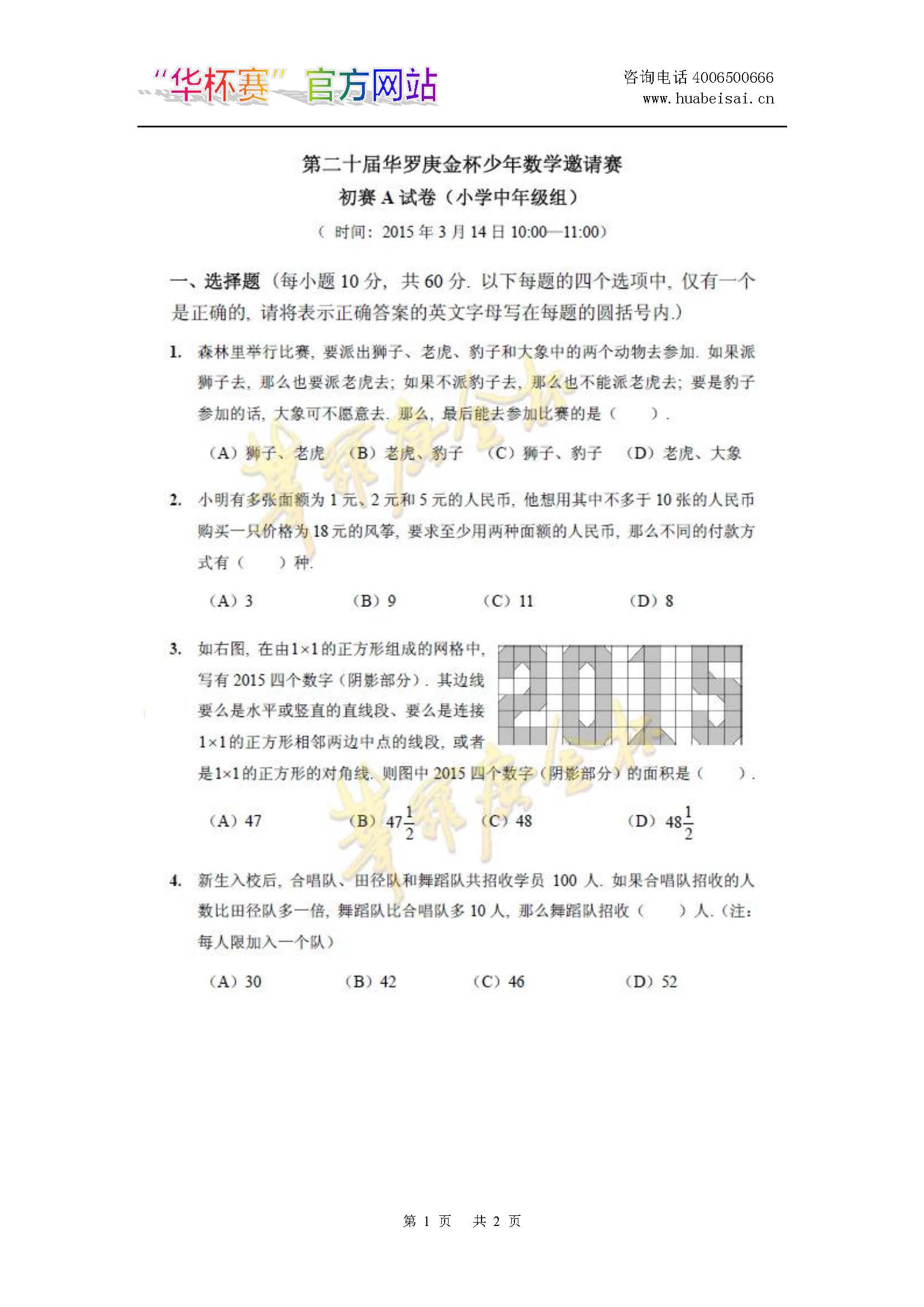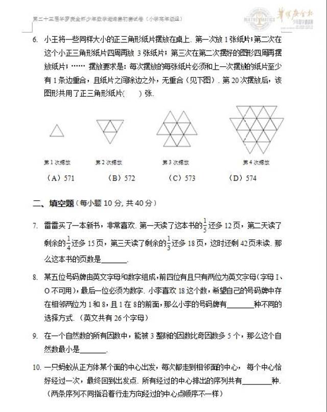 十八届华杯赛小学高年级组初赛试题(A卷)