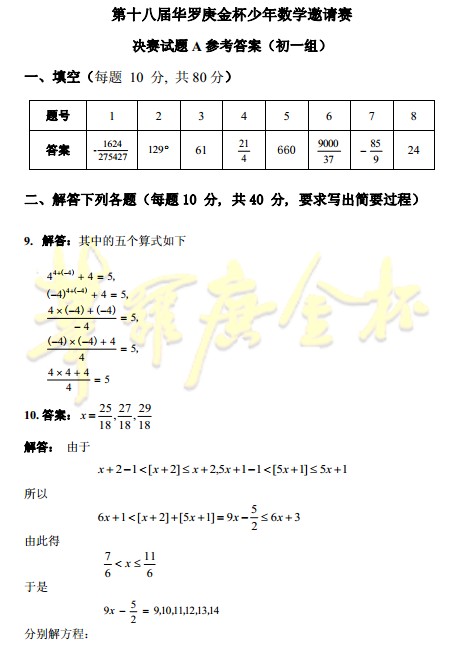 第十八届华杯赛决赛试题A卷答案(初一组)_