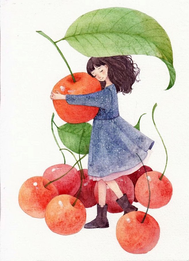 插画家园-插画家园水彩时光-插画家园一组爱水果的小人儿-插画家园