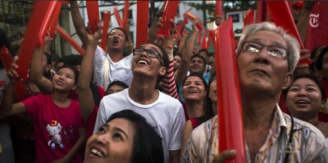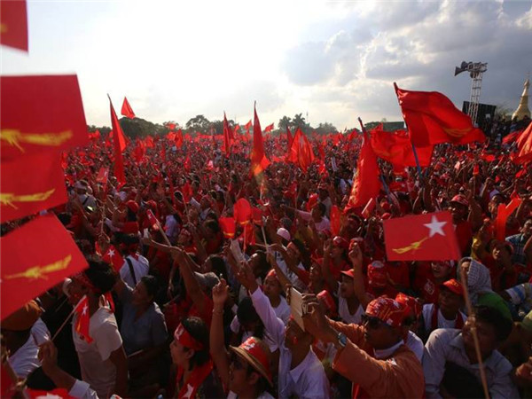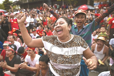 缅甸大选民盟压倒性领先 支持者街头庆祝