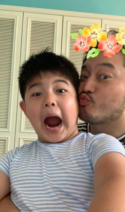 沙溢胡可大儿子脸部晒伤,几乎认不出,9岁