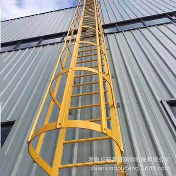 直梯玻璃钢拉挤型材带护笼爬梯消防用绝缘梯子