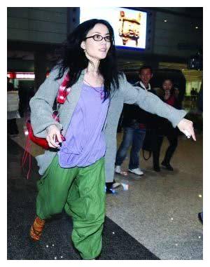 50岁王菲走机场,T恤搭配灯笼裤全身松松