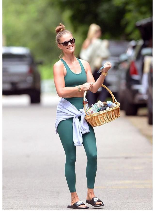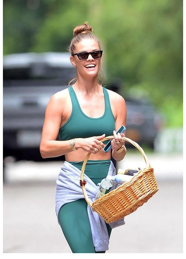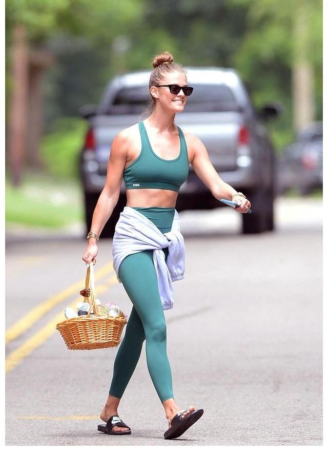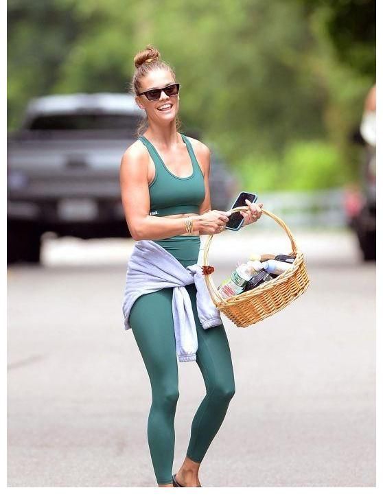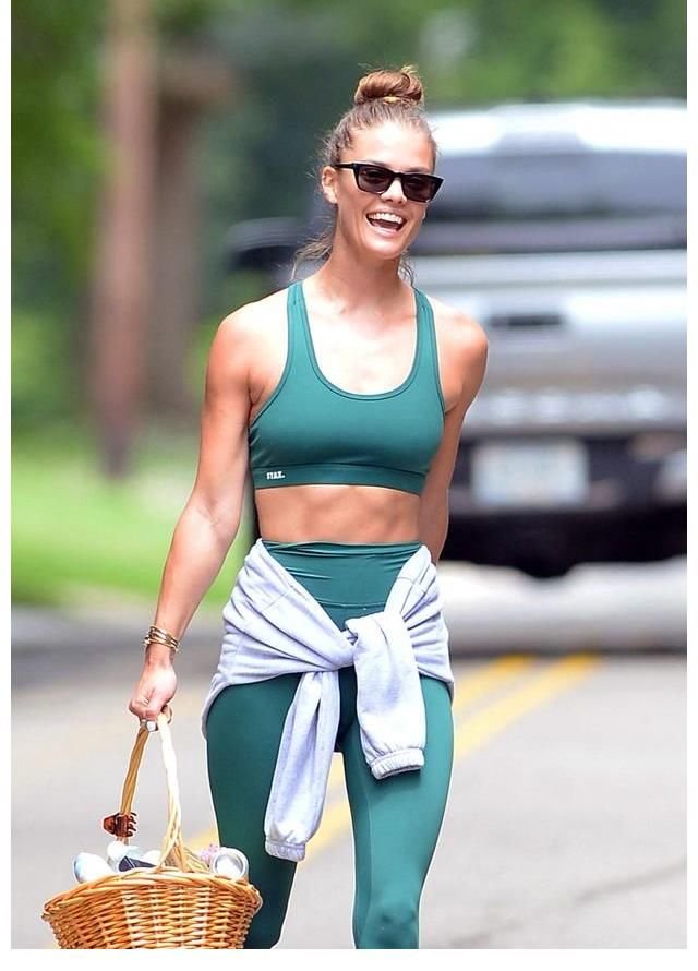 尼娜·阿格达尔穿蓝色瑜伽服健美有型,