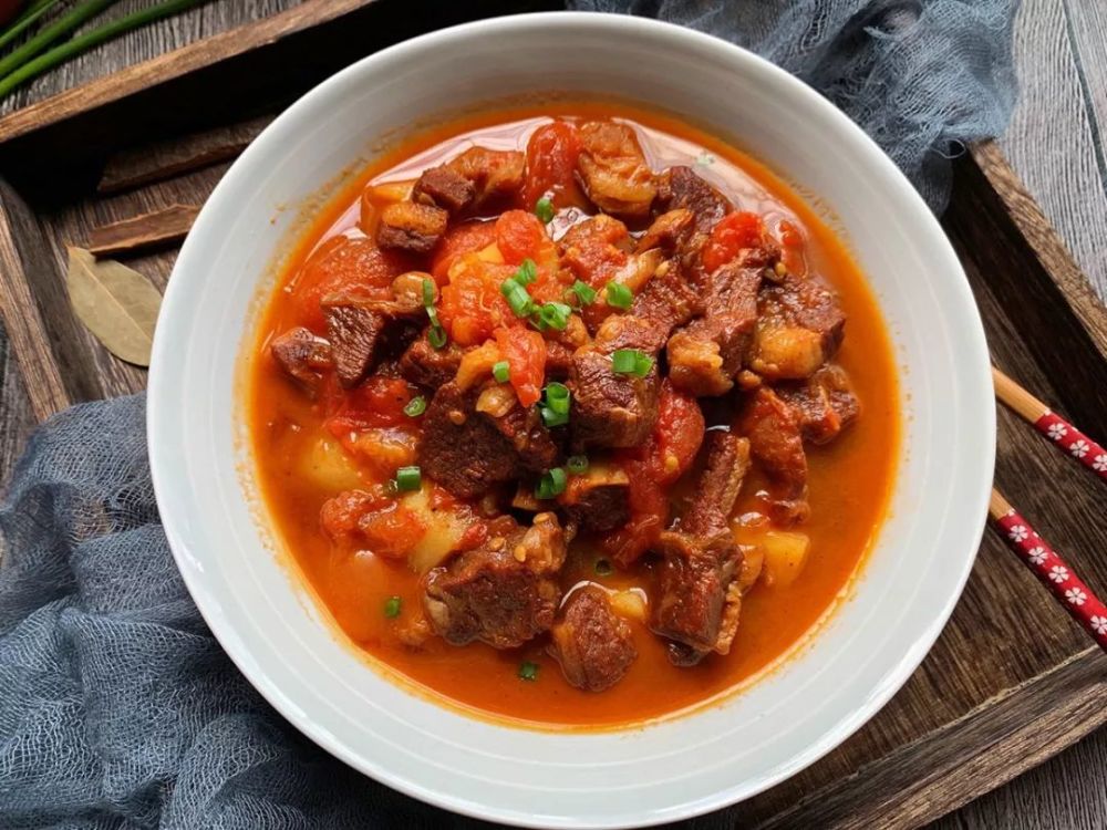 番茄土豆炖牛腩:土豆粉糯,牛腩软烂,拌着