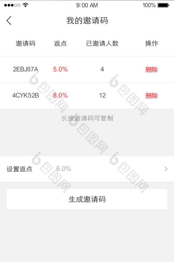 生成注册邀请码返点ui界面