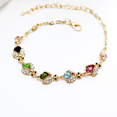 韩版小饰品批发水晶超闪七星瓢虫锆石手链