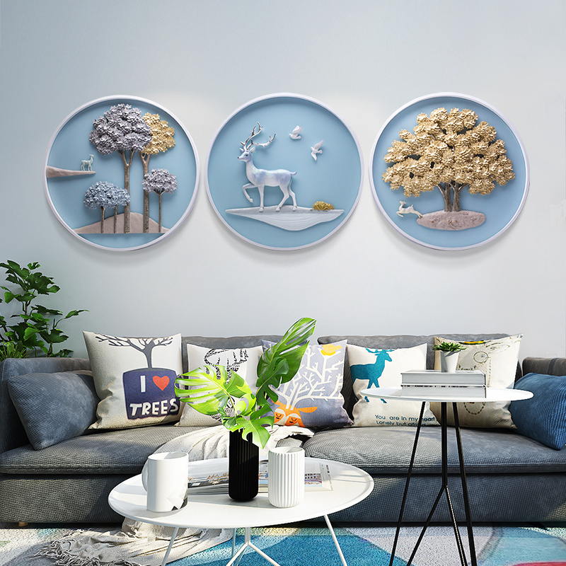 客厅装饰画现代简约沙发背景墙壁画北欧麋鹿三联画挂画墙画