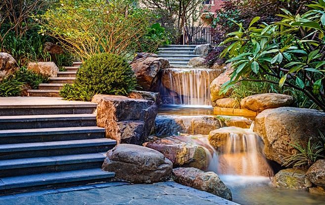 4款自然跌水景观设计图片大全别墅梯田式跌水瀑布景观