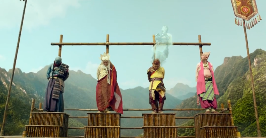 赵丽颖演女王,让唐僧师徒四人装死飙演技,猪八戒惨被射成豪猪!