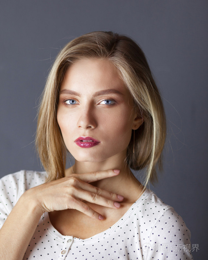 看自己在镜子中反射的金发女人