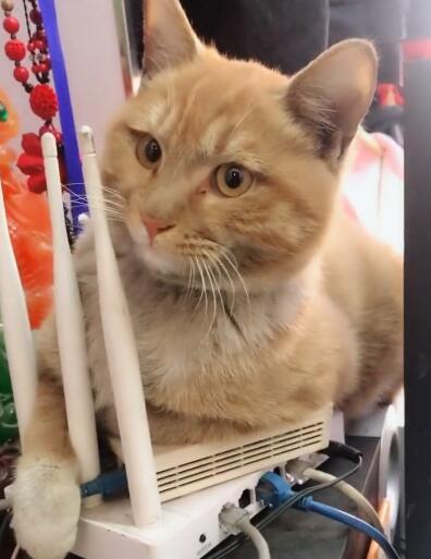 大猫咪好可爱,成天趴在路由器上,网友:增强
