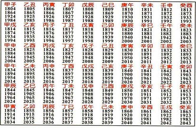 中国传统天干地支纪年法与公元纪年法本甲子对照表