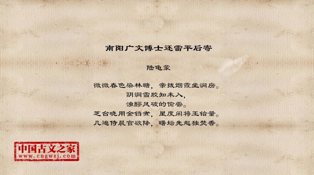 南阳广文博士还雷平后寄繁体版、繁体字版