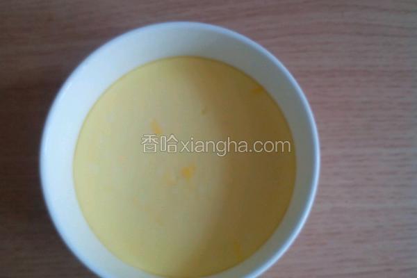 简介:用料材料 鸡蛋两个芝士一片或两片(按蛋的分量适当增减)生抽少许做法1. 蛋打散2. 按照1:2的分量加入清水和生抽
