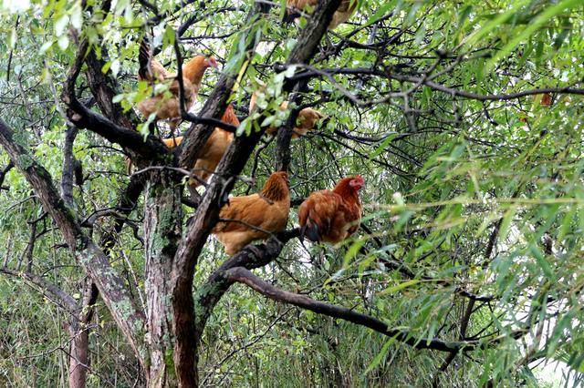 广东连山金子山的鸡成“战斗鸡”, 为躲避厨师抓鸡集体飞树上