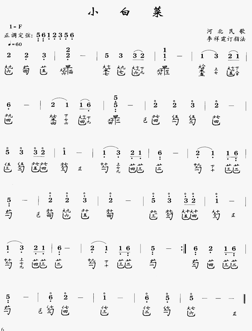 小白菜(古琴曲谱) 简谱-虫虫吉他谱免费下载