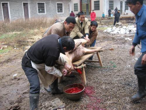 农村女人杀猪宰羊刀法娴熟,杀鸡宰鸭更是