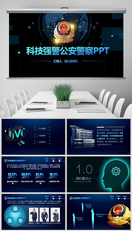 蓝色科技公安警察特警武警网络民警PPT