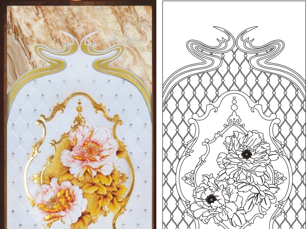 北京老画家绚丽多姿的四尺开三条幅牡丹画