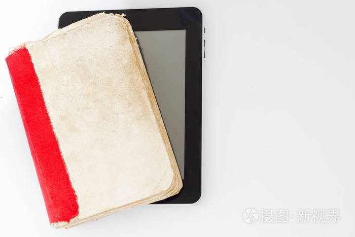 旧书与自制平板电脑在白色背景