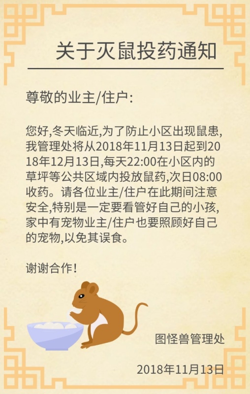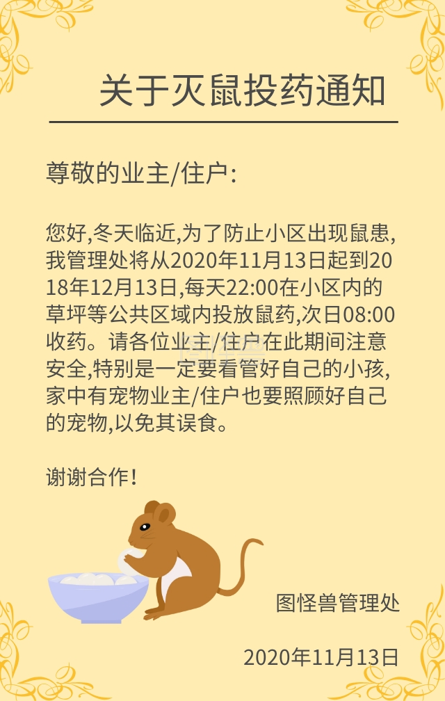 物业小区灭鼠通知