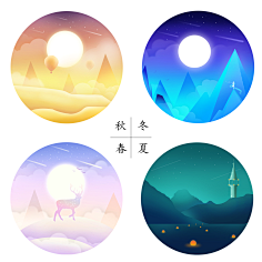 春夏秋冬画画四幅一起