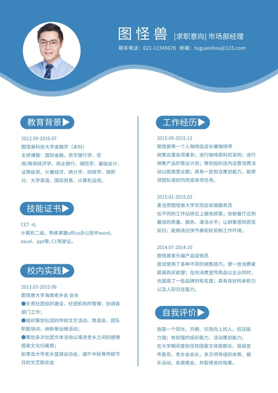 蓝色简约市场部专业资深求职简历
